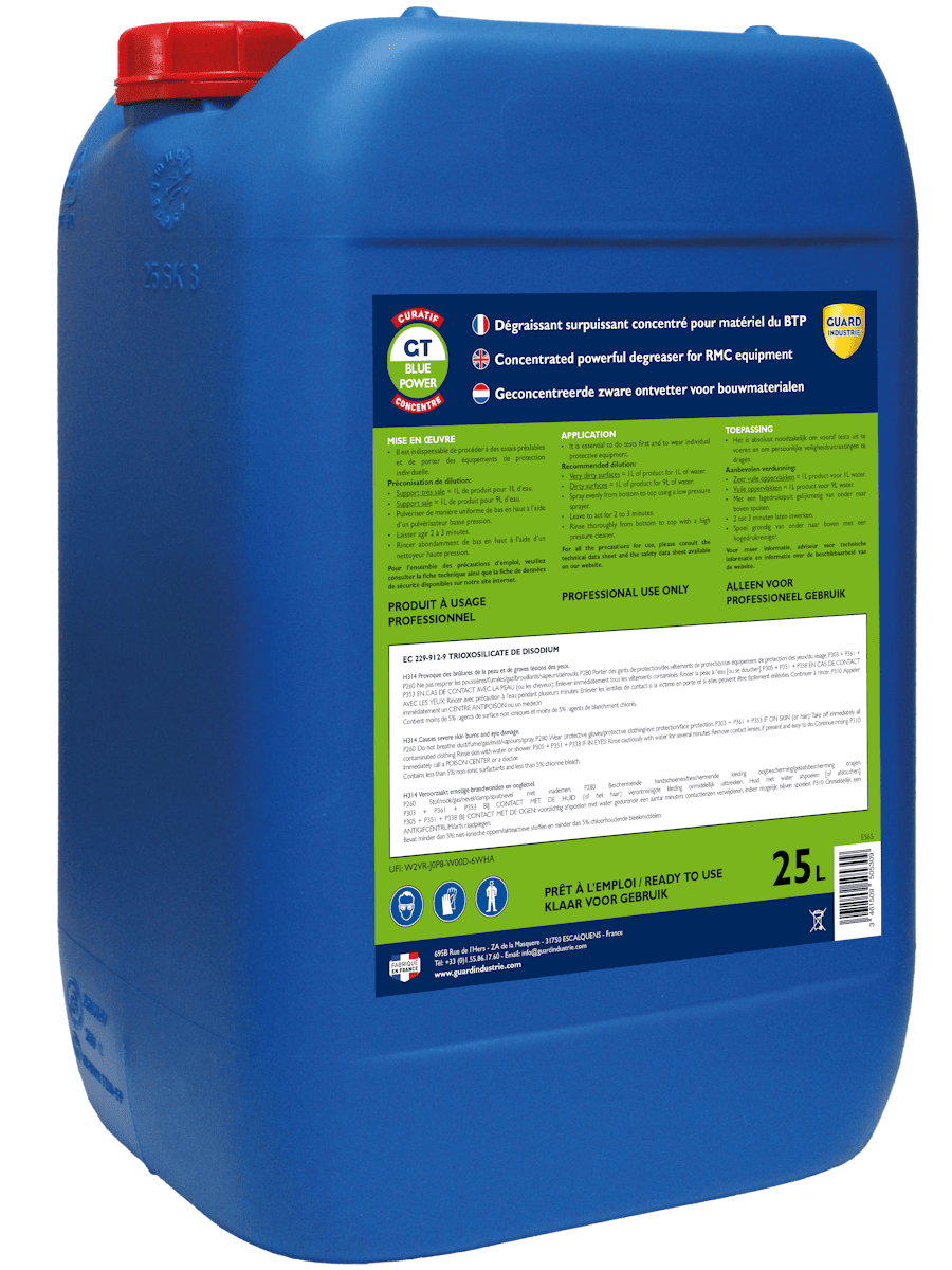 Guard Tech Power Blue – Dégraissant intensif pour moteurs et camions (action rapide)Dégraissant Surpuissant Concentré pour Matériel Du BTP